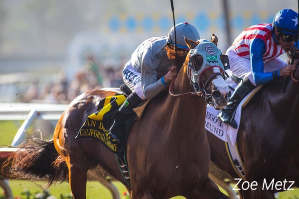 In a memorable renewal of the Grade II $200,000 San Diego Handicap, fan favorite California Chrome outfinished a stubborn Dortmund after a prolonged duel to score a half-length victory Saturday in the mile and one-sixteenth prep for the Grade I $1 million TVG Pacific Classic on August 20.